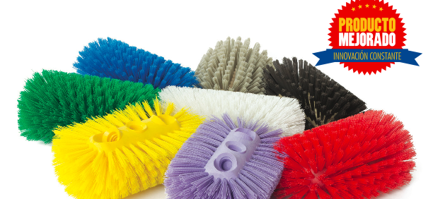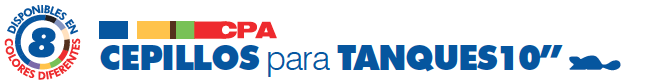 Cepillos fabricados con materiales adecuados para estar en contacto directo con alimentos, para lavado de tanques y marmitas, contenedores y pipas (tanques de transporte de líquidos), con block de polipropileno estructural de 6” de longitud (10” longitud total) y fibra de PBT de baja rigidez ,en el caso de los cepillos código 4801, y rigidez media en el caso de los cepillos código 4802, de 1 3⁄4” de longitud.