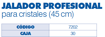Jalador diseñado especialmente para la limpieza de vidrios. Su hule es fabricado bajo especificaciones ideales para esta labor y el filo del mismo es el adecuado para no dejar marcas en los vidrios.