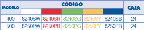 El modelo 400 cuenta con 300 g de pabilo y el modelo 500 con 400 g.